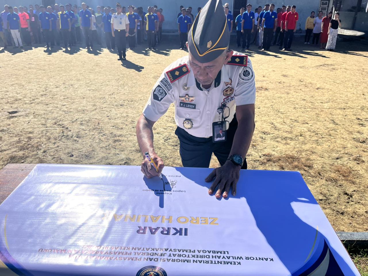 Namlea, indonesiatimur.co – Lembaga Pemasyarakatan (Lapas) Kelas III Namlea menjukkan komitmennya memerangi praktek peredaran Handphone, Pungutan Liar, dan Narkoba (Halinar) di lingkungan Lapas dengan mengumandangkan ikrar zero halinar serentak oleh seluruh jajaran pegawai pada Senin (20/04/2026). Ikrar yang dideklarasikan langsung oleh Kepala Lapas Namlea, Muhammad M. Marasabessy beserta seluruh jajarannya tersebut menandakan prinsip teguh Lapas Namlea untuk mewujudkan Lapas yang bersih penggunaan barang-barang terlarang khususnya handphone dan narkoba yang saat ini masih menjadi musuh utama di setiap Unit Pelaksana Teknis (UPT) Pemasyarakatan. “Kita tidak akan pernah mentolerir apapun yang berkaitan…