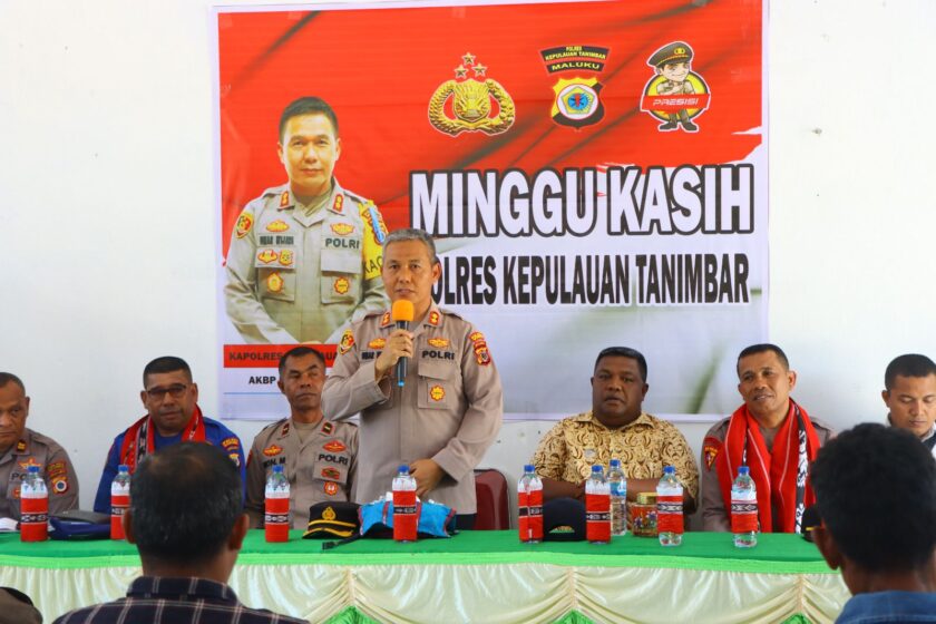 Mengawali Sambutannya, Kapolres Kepulauan Tanimbar menjelaskan bahwa kegiatan Minggu Kasih ini merupakan Program Quick Wins Presisi POLRI yang bertujuan untuk mencari solusi bersama terkait penyelesaian masalah-masalah yang ada di lingkungan masyarakat, sekaligus memberikan pesan-pesan kamtibmas dan mengantisipasi terjadinya gangguan kamtibmas.