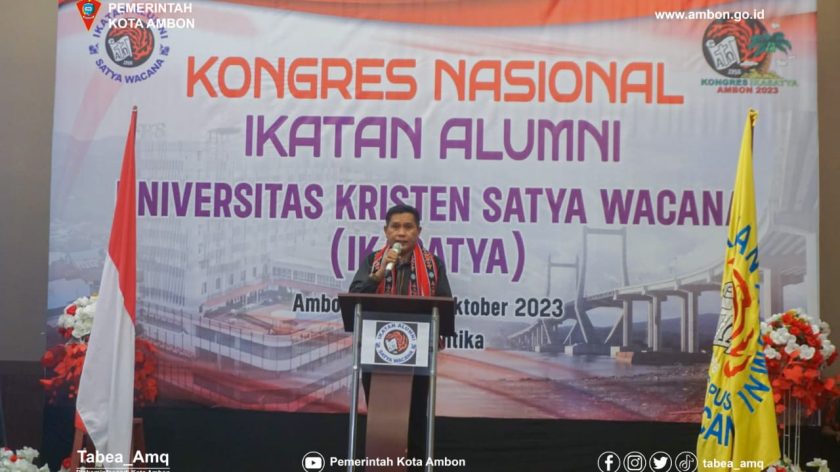 Ambon, indonesiatimur.co – Pemerintah Kota Anbon mengapresiasi Kongres Nasional Ikatan Alumni Satya Wacana (IKASATYA) tahun 2023 yang berlangsung di Santika Hotel, Sabtu (07/10/2023).