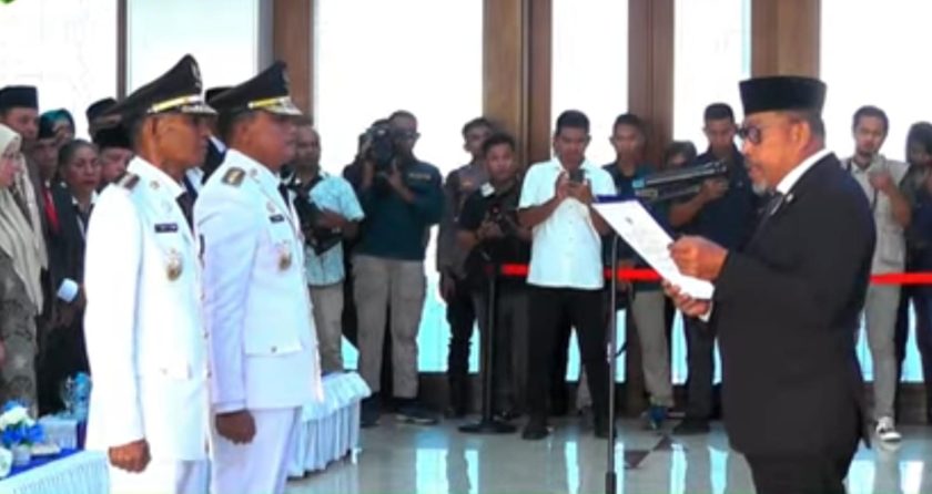Ambon, indonesiatimur.co – Berdasarkan Surat Keputusan (SK) Menteri Dalam Negeri (Mendagri), Tito Karnavian nomor 100.2.1.3-4114 tahun 2023, dan 100.2.1.3-4115 tahun 2023 tentang pengesahan pengangkatan masing-masing Penjabat Bupati Malra dan Penjabat Wali Kota Tual, Gubernur Maluku Murad Ismail melantik secara resmi Haji Akhmad Yani Renuat sebagai Penjabat Wali Kota Tual, dan Jasmono sebagai Penjabat Bupati Maluku Tenggara (Malra). Pelantikan ini berlangsung di lantai 7 kantor Gubernur, Selasa (31/10/2023),