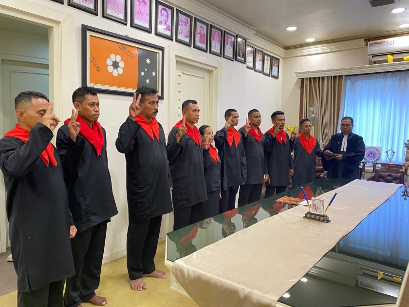 Ambon, indonesiatimur.co – Penjabat (Pj) Wali Kota Ambon, Bodewin M. Wattimena, meresmikan sembilan (9) orang saniri Negeri Ema, Kecamatan Leitimur Selatan (Leitisel), yang dilaksanakan secara tertutup di ruang kerja, Balai Kota, Jumat (15/12/2023).
