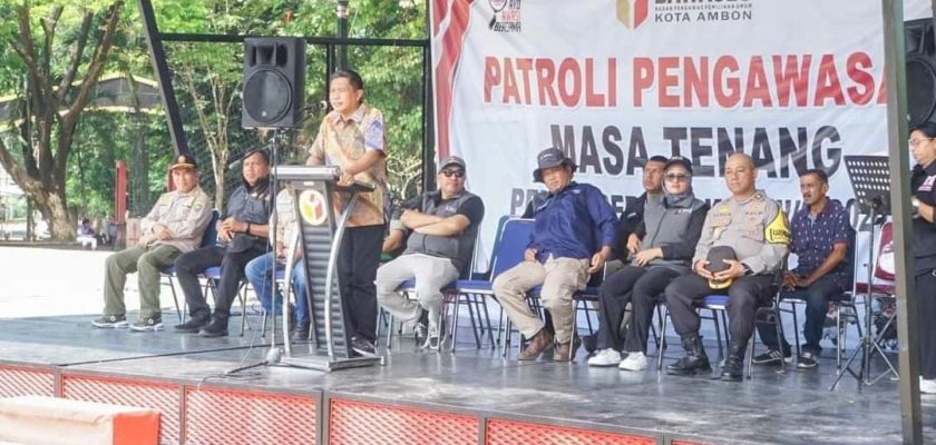 Ambon, indonesiatimur.co – Memasuki masa tenang Pemilu, Bawaslu Kota Ambon melaksanakan Patroli Pengawasan Alat Peraga Kampanye (APK), yang diawali dengan apel bersama, Minggu (11/02/2024), di Pattimura Park.