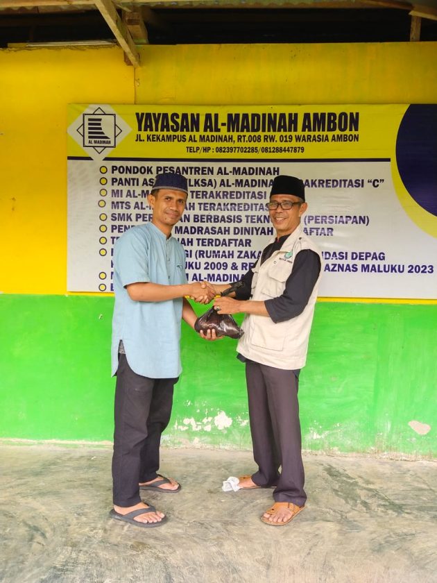 Ambon, indonesiatimur.co – Sebagi wujud kepedulian sosial, melalui momentum Hari Raya Idul Adha 1445 Hijriah ini, Lembaga Pemasyarakatan (Lapas) Kelas IIA Ambon menyalurkan daging qurban kepada masyarakat yang membutuhkan dalam hal ini Yayasan Panti Asuhan Al-Madinah Ambon, Senin (17/06/2024).