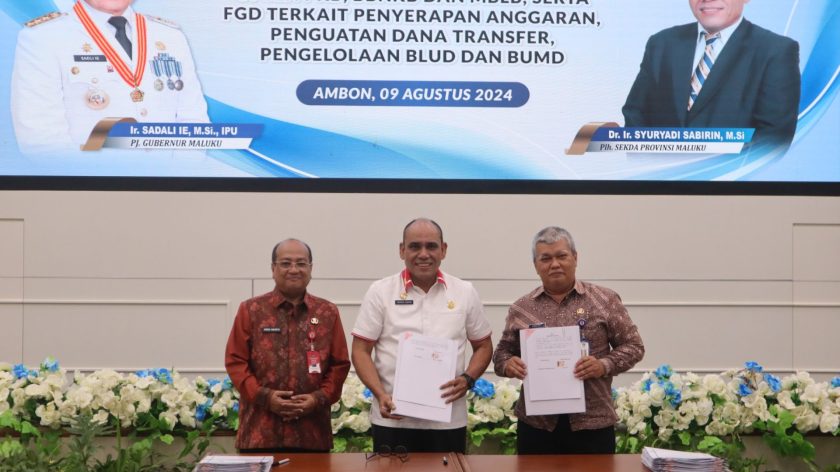 Ambon, indonesiatimur.co – Pelaksana Harian Sekretaris Daerah Maluku, Syuryadi Sabirin menandatangani MOU dan Perjanjian Kerja Sama Antara Pemerintah Provinsi Maluku dengan Pemerintah Kabupaten Kota, tentang Optimalisasi Pajak Daerah, pada Jumat (09/08/2024), bertempat di Aula Lantai 7 Kantor Gubernur Maluku.