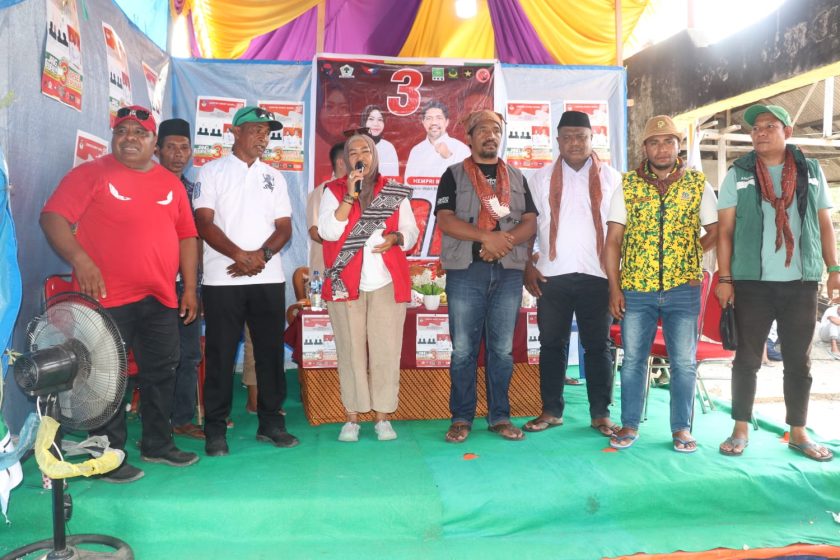 Komitmen memenangkan Safitri-Hemfri terlihat sejak pasangan calon tiba di Desa Waiteba. Ratusan masyarakat datang menyambut pasangan dengan jargon SAH. Mereka terlihat sangat antusias menuju lokasi kampanye, pada Senin (04/11/2024).