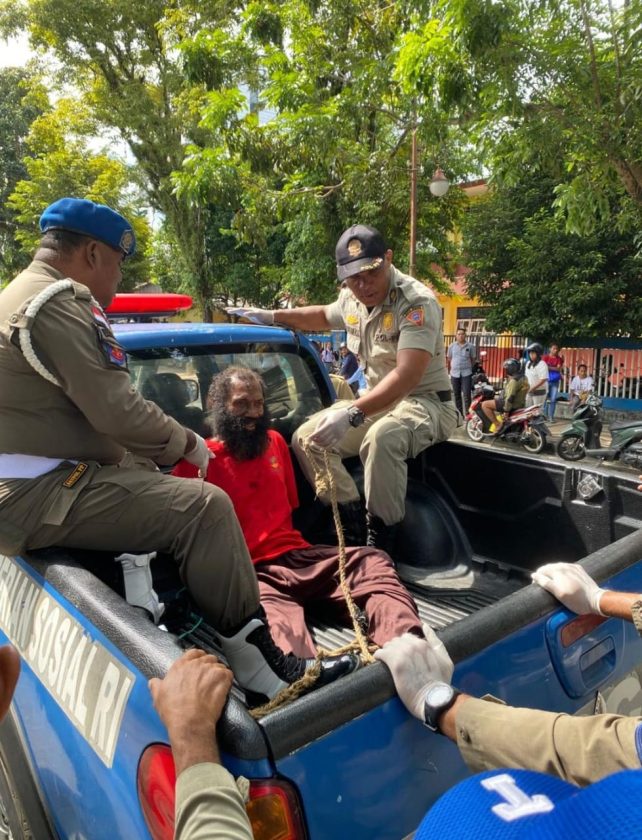 Menurut Slarmanat, ODGJ tersebut sempat beberapa kali melakukan perlawanan dan menunjukan perilaku agresif,namun setelah dilakukan pendekatan yang cukup intens antara staf Dinsos serta Satpol PP, akhirnya ODGJ tersebut dapat diberikan pakaian yang layak dan dievakuasi ke Rumah Sakit Khusus Daerah (RSKD) Provinsi Maluku.