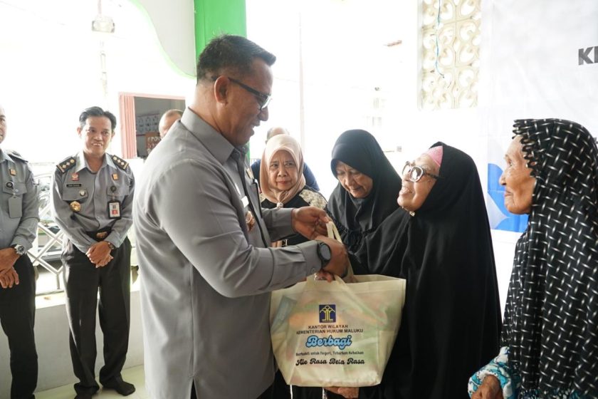 Berlangsung di Masjid Al-Istiqomah, Talake, Kepala Kantor Wilayah (Kakanwil) Kemenkum Maluku Saiful Sahri bersama Kepala Divisi (Kadiv) Pelayanan Hukum Reza Anaditiyas Ananda dan Kadiv Peraturan Perundang-undangan dan Pembinaan Hukum La Margono beserta jajarannya secara langsung membagikan sembako kepada 45 keluarga kurang mampu, termasuk ibu rumah tangga, anak yatim, dan kelompok rentan lainnya.
