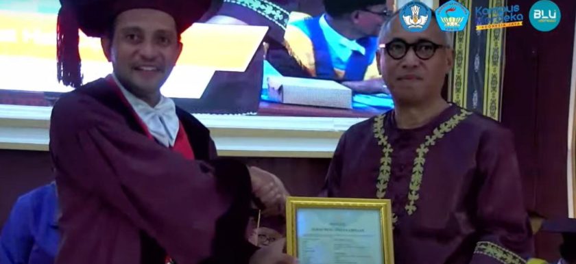 Penyerahan sertivikat HAKI diterima langsung oleh Raja Negeri Rutong, Reza Valdo Maspaitella dari Wakil Menteri Hukum Prof.Dr. Edward Omar Sharif Hiareij, SH.,M.Hum di Universitas Pattimura.