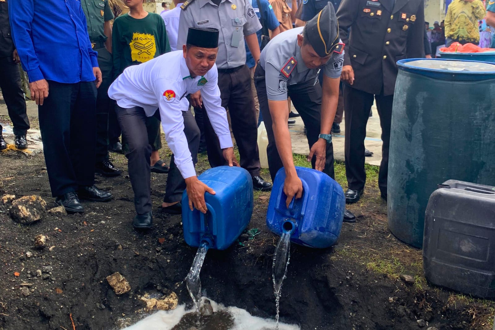 Sebanyak 1.100 liter barang bukti miras tradisional jenis Sopi yang dimusnahkan merupakan hasil operasi yang dilakukan oleh Anggota Polsek Banda bersama Anggota koramil 1502-01/Banda baru-baru ini.