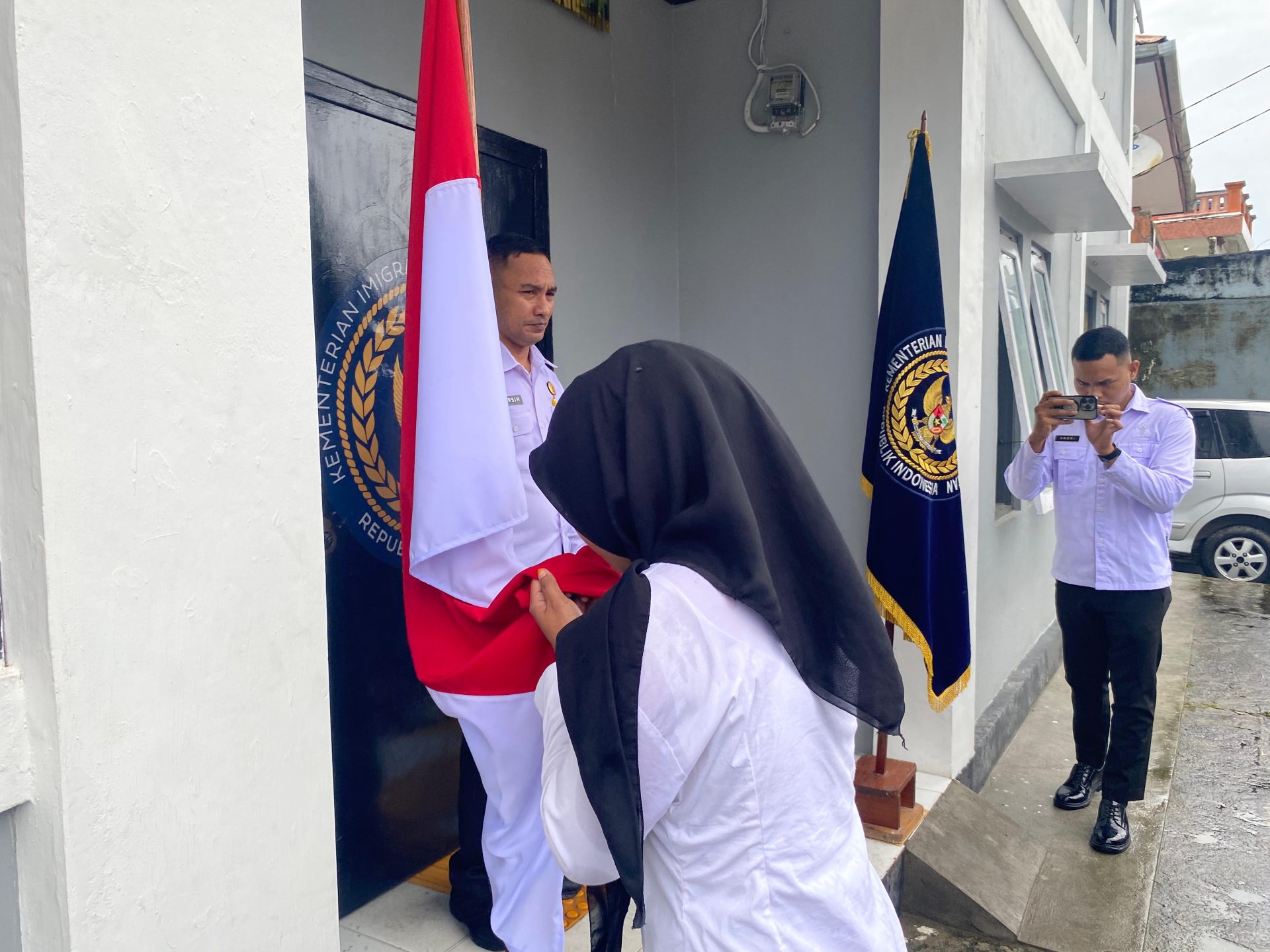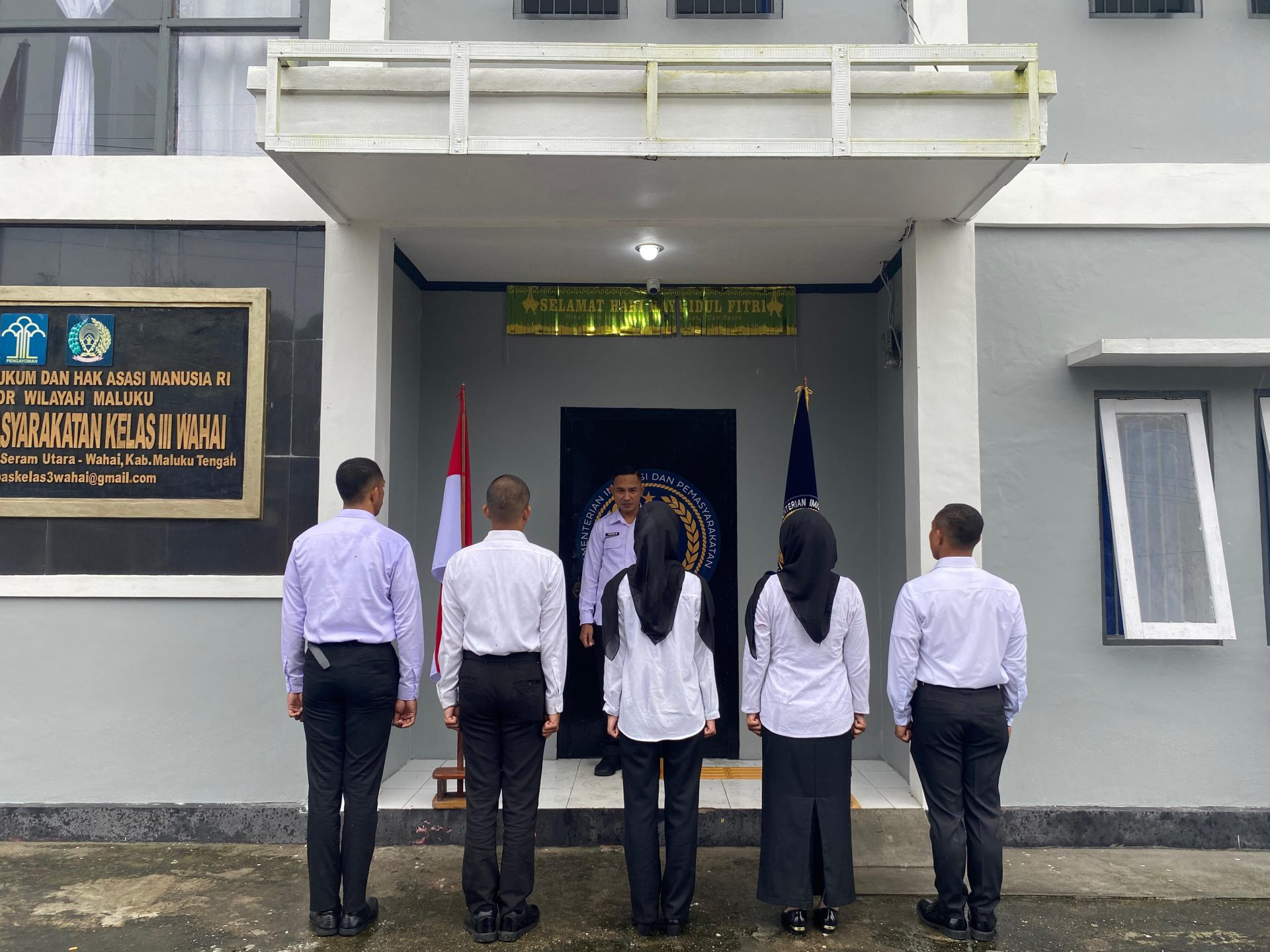 Wahai, indonesiatimur.co – Mengawali pengabdian sebagai ‘Tunas Pemasyarakatan’ di Lembaga Pemasyarakatan (Lapas) Kelas III Wahai, sebanyak 5 (lima) orang Calon Pegawai Negeri Sipil (CPNS) melakukan tradisi cium bendera merah putih dan pataka Kementerian Imigrasi dan Pemasyarakatan (Kemenimipas) atas presensi perdana mereka, pada Selasa (02/07/2025).