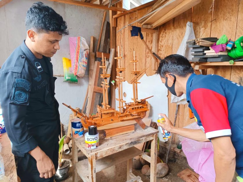 Wahai, indonesiatimur.co – Hasil kerajinan warga binaan Lembaga Pemasyarakatan (Lapas) Kelas III Wahai berupa miniatur kapal pinisi dan tas kresek anyaman kembali diorder oleh masyarakat. Hal tersebut terpantau saat pengerjaan pesanan kerajinan tersebut di bengkel kerja Lapas, Sabtu (05/07/2025).