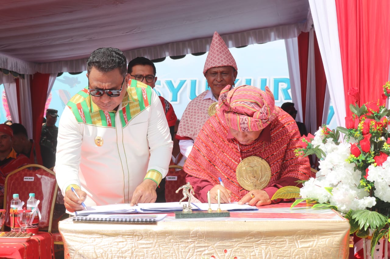 Acara peresmian Mall Pelayanan Publik Kabupaten MBD ditandai dengan penekanan tombol sirene, penandatangan berita acara bersama Bupati MBD dilanjutkan dengan peresmian Blok D, peninjauan serta menyerahkan KTP kepada 2 masyarakat oleh Wakil Gubernur secara simbolis dan disaksikan secara langsung oleh Bupati MBD dan tamu undangan lainnya. (it-02)