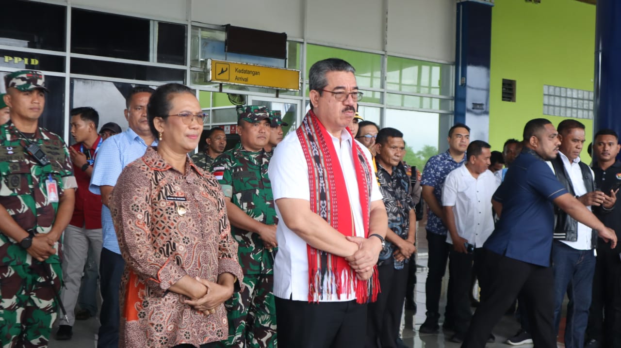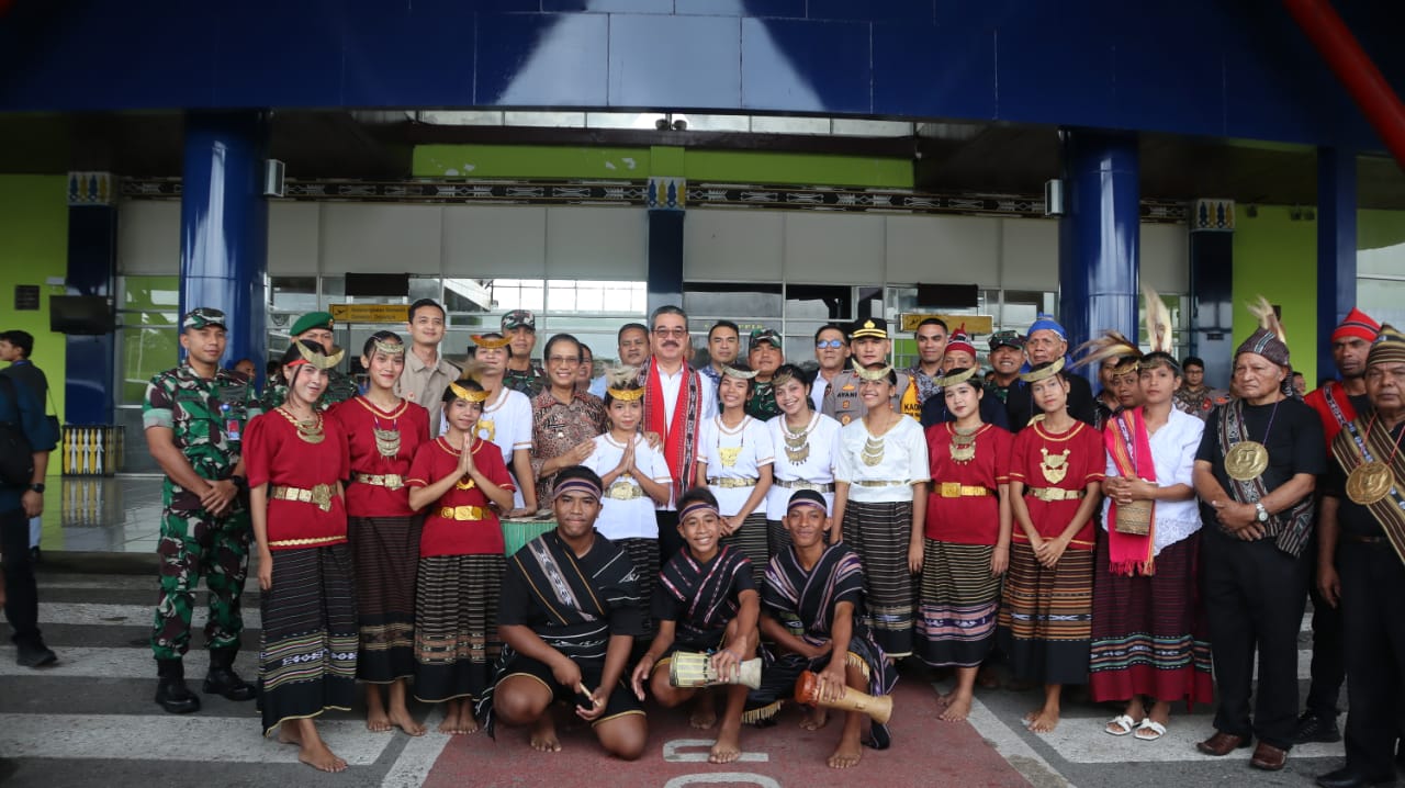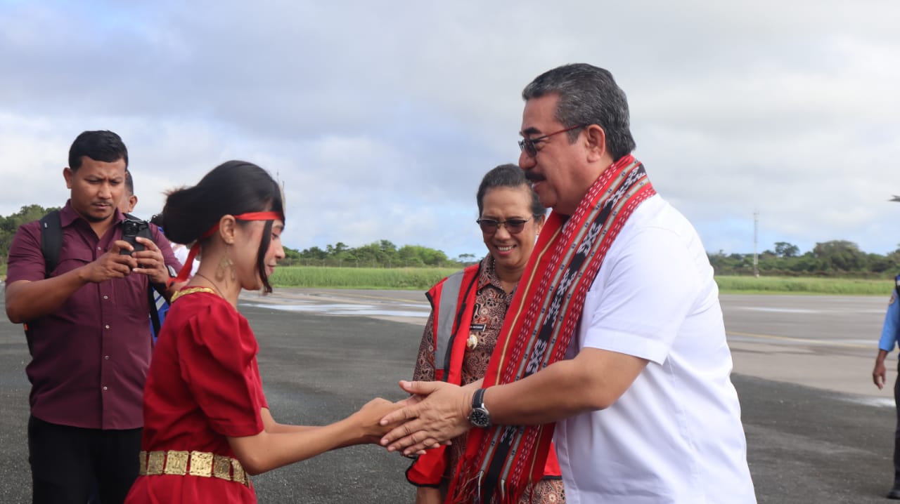 Dengan menggunakan pesawat reguler Wing Air, Gubernur dan rombongan tiba di Bandara Udara Mathilda Batlayeri Saumalaki pukul 08.45 WIT dijemput langsung oleh Wakil Bupati KKT dan Forkopimda Kabupaten Kepulauan Tanimbar serta disambut dengan pengalungan syal, doa adat dan tarian selamat datang.