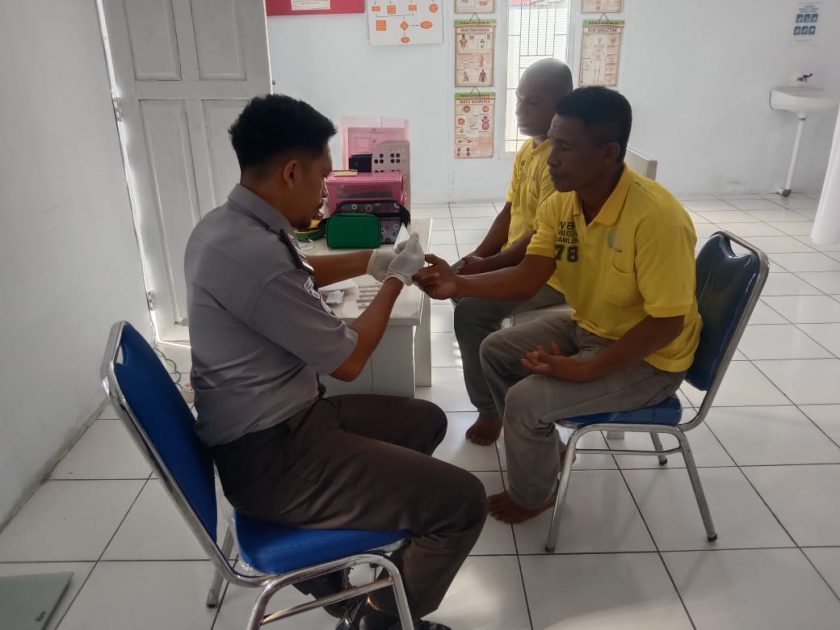 Fransky Uneputty selaku petugas kesehatan Lapas didampingi petugas medis dari Puskesmas Sawa melakukan serangkaian pemeriksaan kesehatan dasar dan skrining penyakit Infeksi Menular Seksual (IMS) terhadap 5 orang warga binaan berinisial ST dkk.