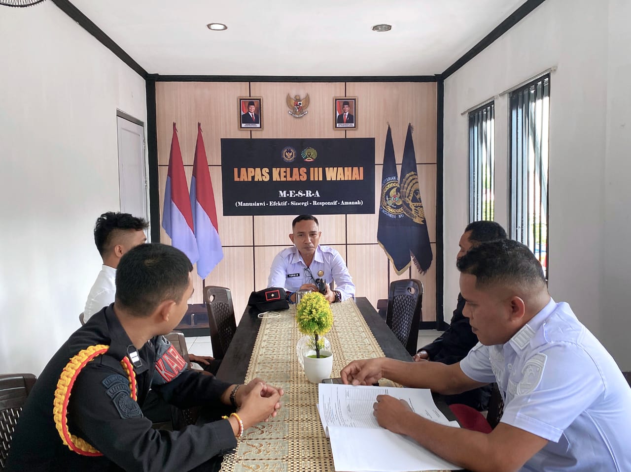 Wahai, indonesiatimur.co – Lembaga Pemasyarakatan (Lapas) Kelas III Wahai terus mendorong peningkatan kualitas sumber daya manusia (SDM), tidak hanya pada Warga Binaan, tetapi juga para petugas. Hal ini ditegaskan Kepala Lapas Wahai, Tersih Victor Noya, dalam arahannya kepada tiga petugas yang akan mengikuti Seleksi Penyesuaian Ijazah (PI) Strata-I, Rabu (06/08/2025).