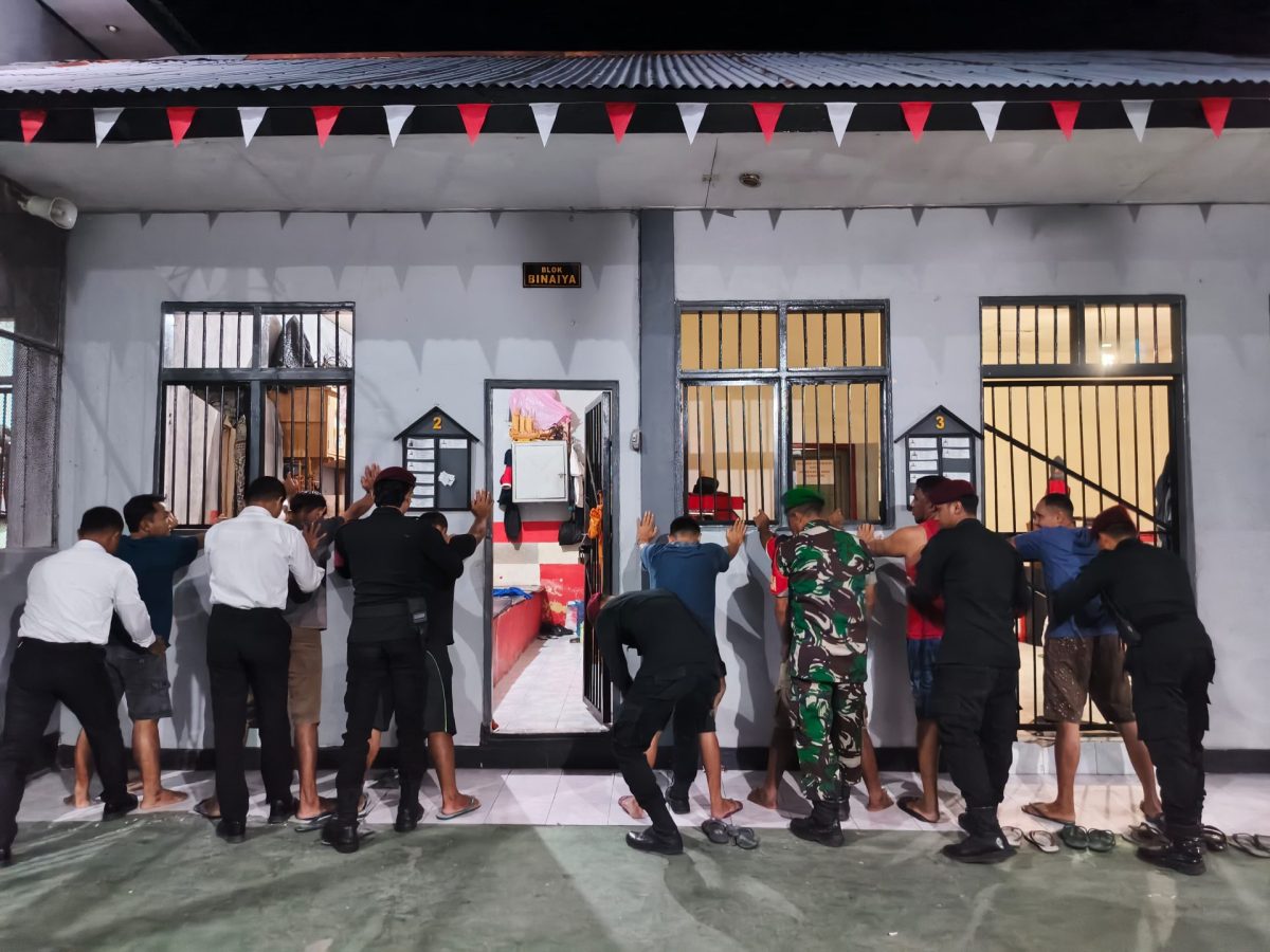 Wahai, indonesiatimur.co – Razia yang rutin dilakukan Lembaga Pemasyarakatan (Lapas) Kelas III Wahai melalui ‘One Week One Raid’ kembali dilaksanakan dengan menggandeng Komando Rayon Militer (Koramil) 1502-05 Wahai, Senin (11/08/2025) malam. Sinergi preventif dalam upaya pemberantasan peredaran narkoba tersebut dilakukan untuk mencegah terjadinya gangguan keamanan dan ketertiban (kamtib), khususnya jelang Hari Ulang Tahun (HUT) Ke-80 Republik Indonesia (RI) pada 17 Agustus mendatang.
