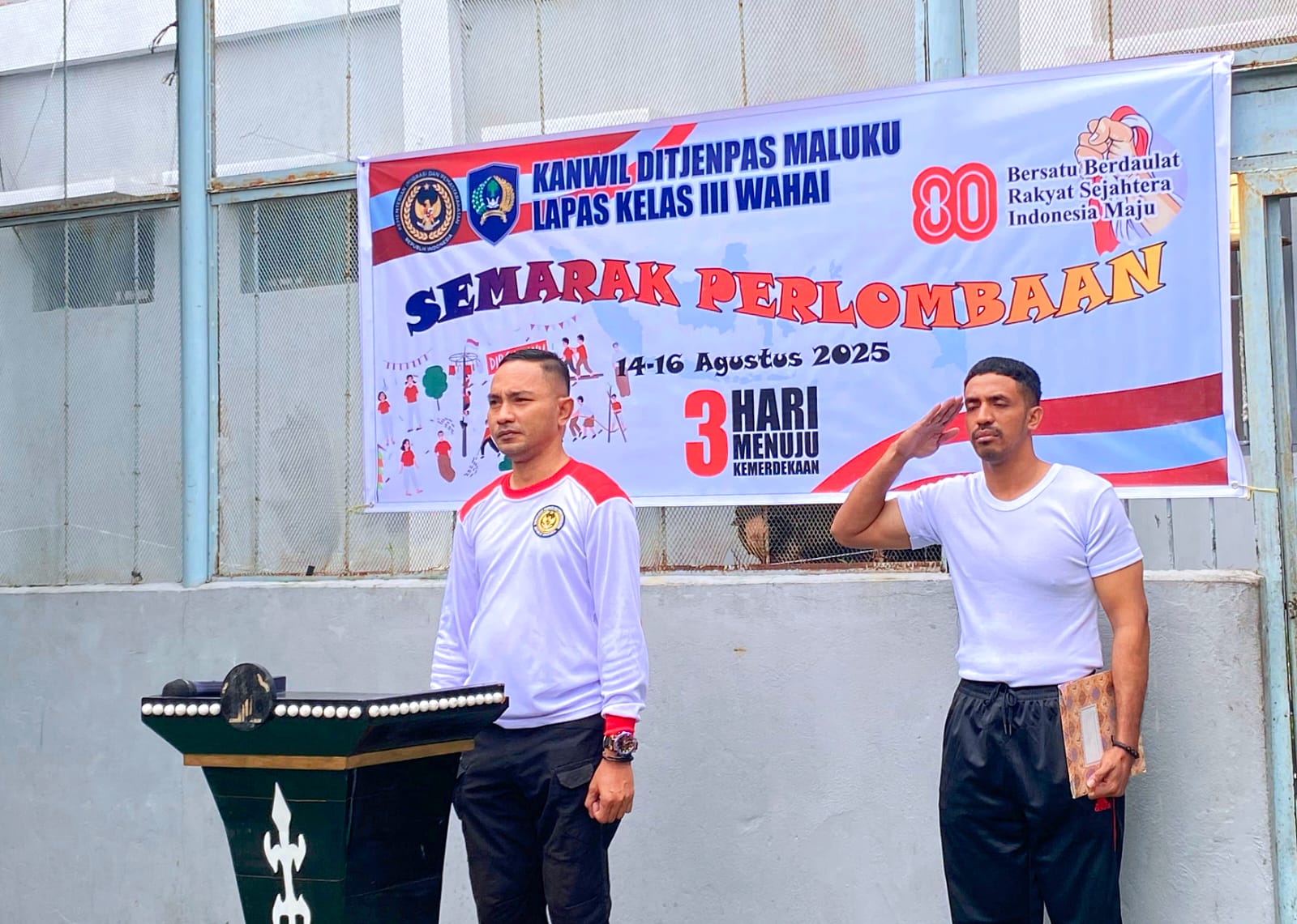Wahai, indonesiatimur.co – ‘Tiga Hari Menuju Kemerdekaan’ menjadi tema semarak perlombaan yang digelar Lembaga Pemasyarakatan (Lapas) Kelas III Wahai dalam peringatan Hari Ulang Tahun (HUT) ke-80 Republik Indonesia (RI). Bertempat di lapangan blok Lapas, semarak lomba dibuka langsung oleh Kepala Lapas Wahai, Tersih Victor Noya, Kamis (14/08/2025).