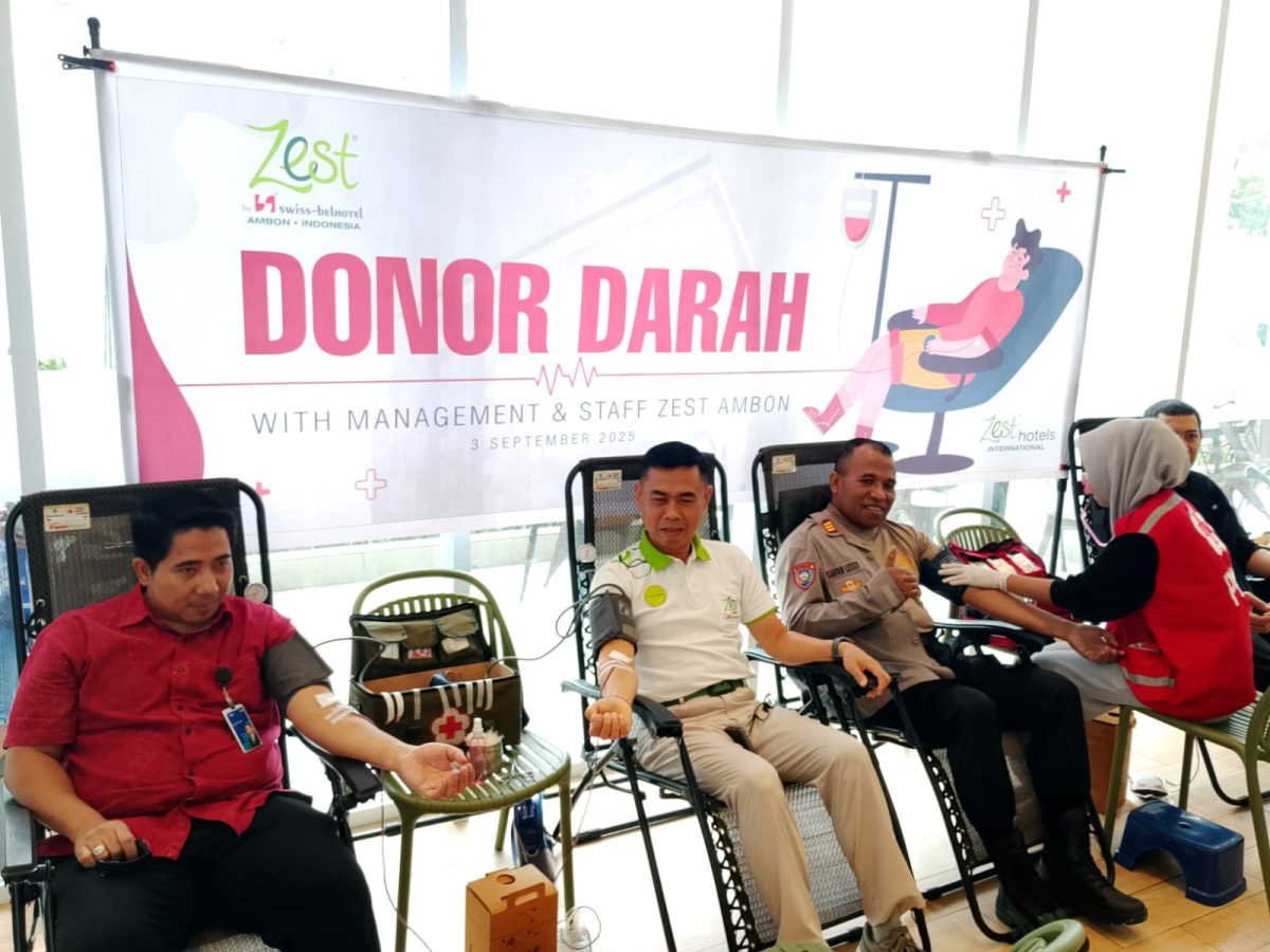 Ambon, indonesiatimur.co – Jelang ulang tahun Swiss-Belhotel Internasional ke -38 pada 25 September 2025 nanti, Swiss-Belhotel – Zest Hotel Ambon menggelar kegiatan donor darah
