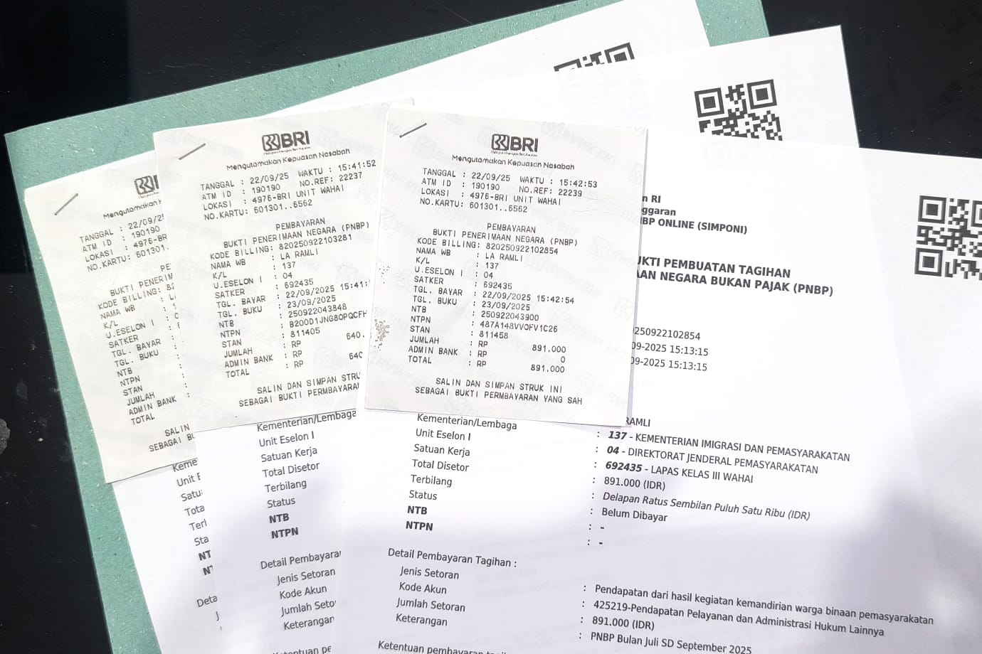Wahai, indonesiatimur.co – Lembaga Pemasyarakatan (Lapas) Kelas III Wahai setor Penerimaan Negara Bukan Pajak (PNBP) tiga triwulan, Selasa (23/09/2025). Ini merupakan hasil program kemandirian sepanjang tahun 2025 yang sukses dengan penjualan hasil karya Warga Binaan berupa produk keterampilan maupun pertanian.