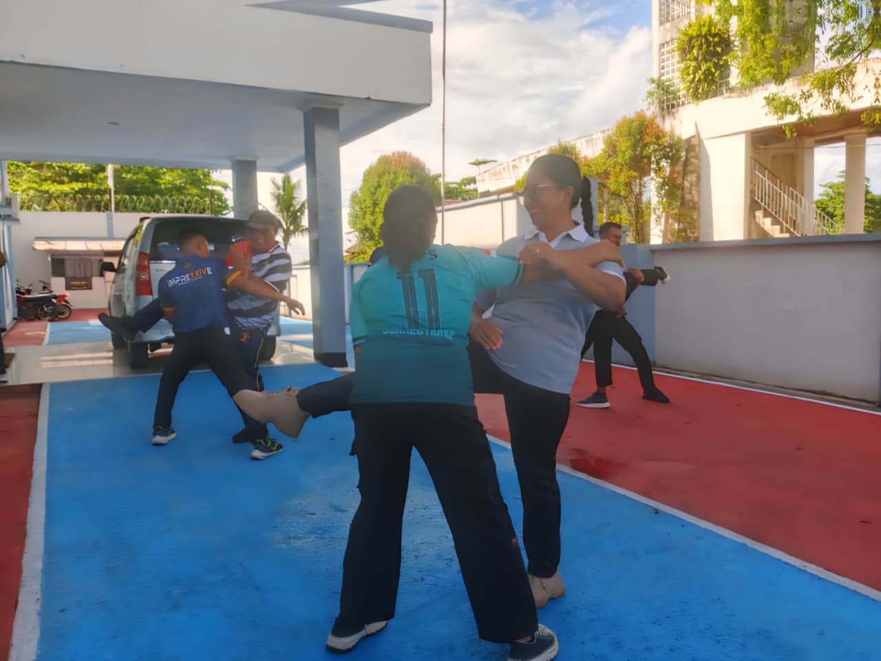 Pelatihan dipimpin oleh CPNS M.F. Kaisupy yang memiliki latar belakang seni bela diri silat. Dengan penuh semangat, ia membagikan berbagai teknik dasar mulai dari pukulan, tendangan, pasangan, sautan, tangkapan, hingga bantingan. Latihan berlangsung dengan suasana antusias, disertai semangat kekompakan dan saling mendukung di antara peserta.