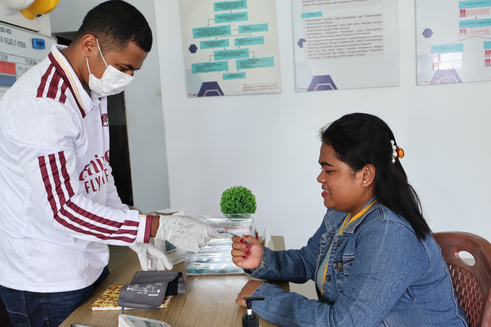 Hari ini, Sabtu (18/10/2025). Bertempat di Ruang Klinik Pratama LPKA Ambon, dilaksanakan pemeriksaan kesehatan gratis bagi keluarga anak binaan. Kegiatan ini dipimpin oleh Kasi Pembinaan LPKA Ambon, Astrid F. Handayani, bersama dr. Sam Syahroni, serta perawat Misba Soumena.