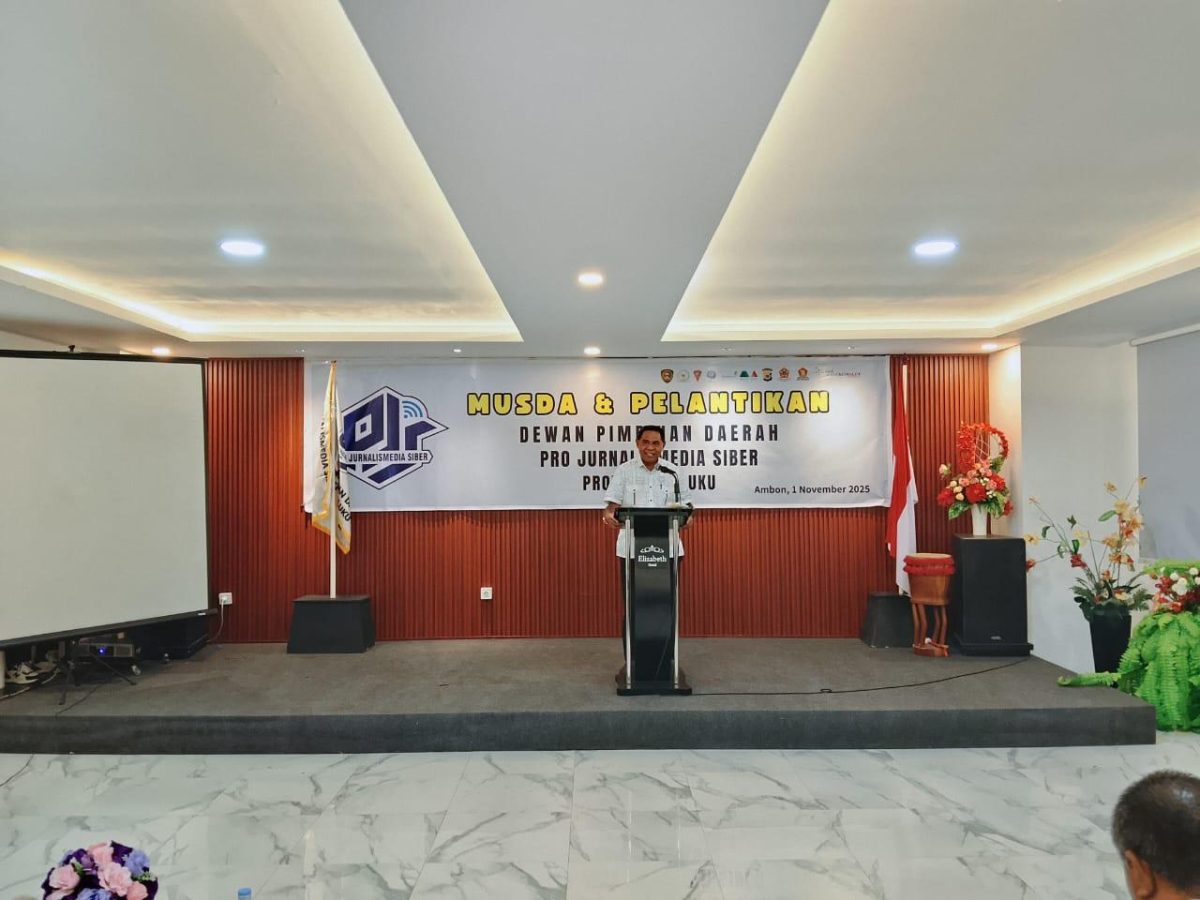 Ambon, indonesiatimur.co – Kepala Dinas Komunikasi dan Informatika Provinsi Maluku Drs. Melkias M. Lohy, M.T mewakili Gubernur Maluku hadiri acara Pelantikan DPD Pro Jurnalismedia Siber (PJS) Provinsi Maluku dan Pengurus DPC Kabupaten/Kota se- Maluku bertempat di Hotel Elizabeth Ambon, Sabtu (01/11/2025).