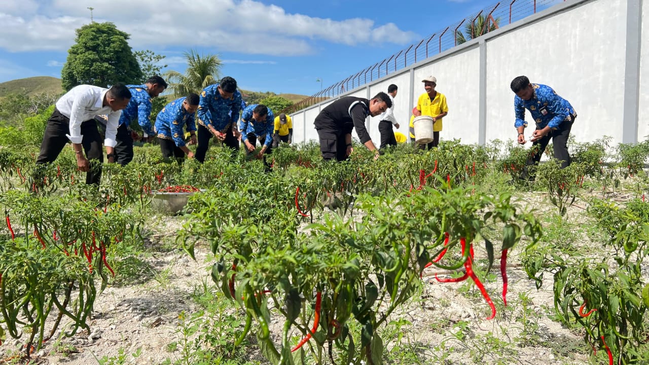 Namlea, indonesiatimur.co – Lembaga Pemasyarakatan (Lapas) Kelas III Namlea terus menunjukkan dukungannya terhadap program presiden Republik Indonesia dan 13 Program Akselerasi Menteri Imigrasi dan Pemasyarakatan untuk mewujudkan ketahanan pangan nasional. Hal itu diwujudkan Lapas Namlea dengan melakukan panen cabai dan timun yang berlangsung di lahan Sarana Asimilasi Edukasi (SAE) Lapas Namlea, Senin (10/11/2025).