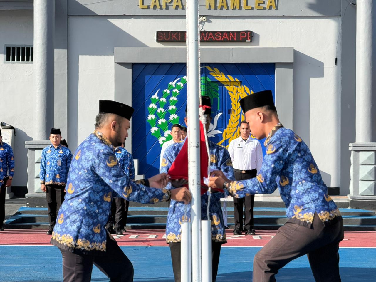 Namlea, indonesiatimur.co – Peringatan Hari Pahlawan menjadi momentum jajaran Lembaga Pemasyarakatan (Lapas) Kelas III Namlea untuk meneledani sikap patriotik para pahlawan dalam memperjuangkan kemajuan bangsa. melalui pelaksaanaan upacara bendera, Lapas Namlea berkomitmen meneruskan semangat juang pahlawan dengan terus memberikan kontribusi dan berdedikasi tinggi terhadap Negara.