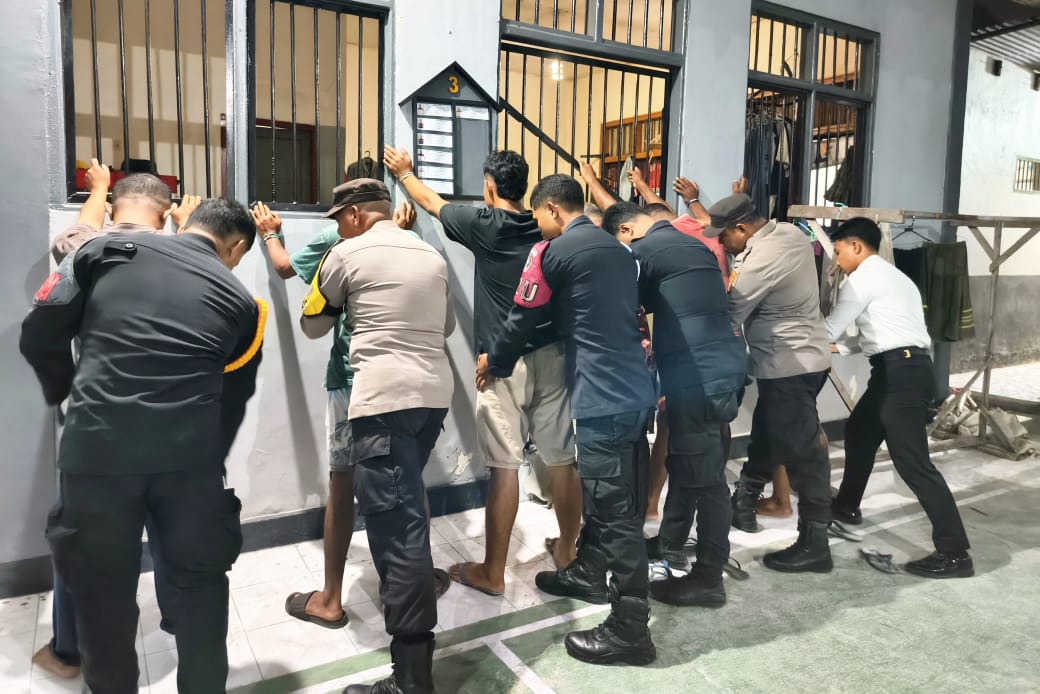 Wahai, indonesiatimur.co – Lembaga Pemasyarakatan (Lapas) Kelas III Wahai bersama Kepolisian Sektor (Polsek) Wahai laksanakan penggeledahan gabungan bertajuk One Week One Raid di blok hunian Warga Binaan, Senin (15/12/2025) malam. Kegiatan ini menjadi bagian dari penguatan pengamanan jelang perayaan Natal dan Tahun Baru (Nataru).