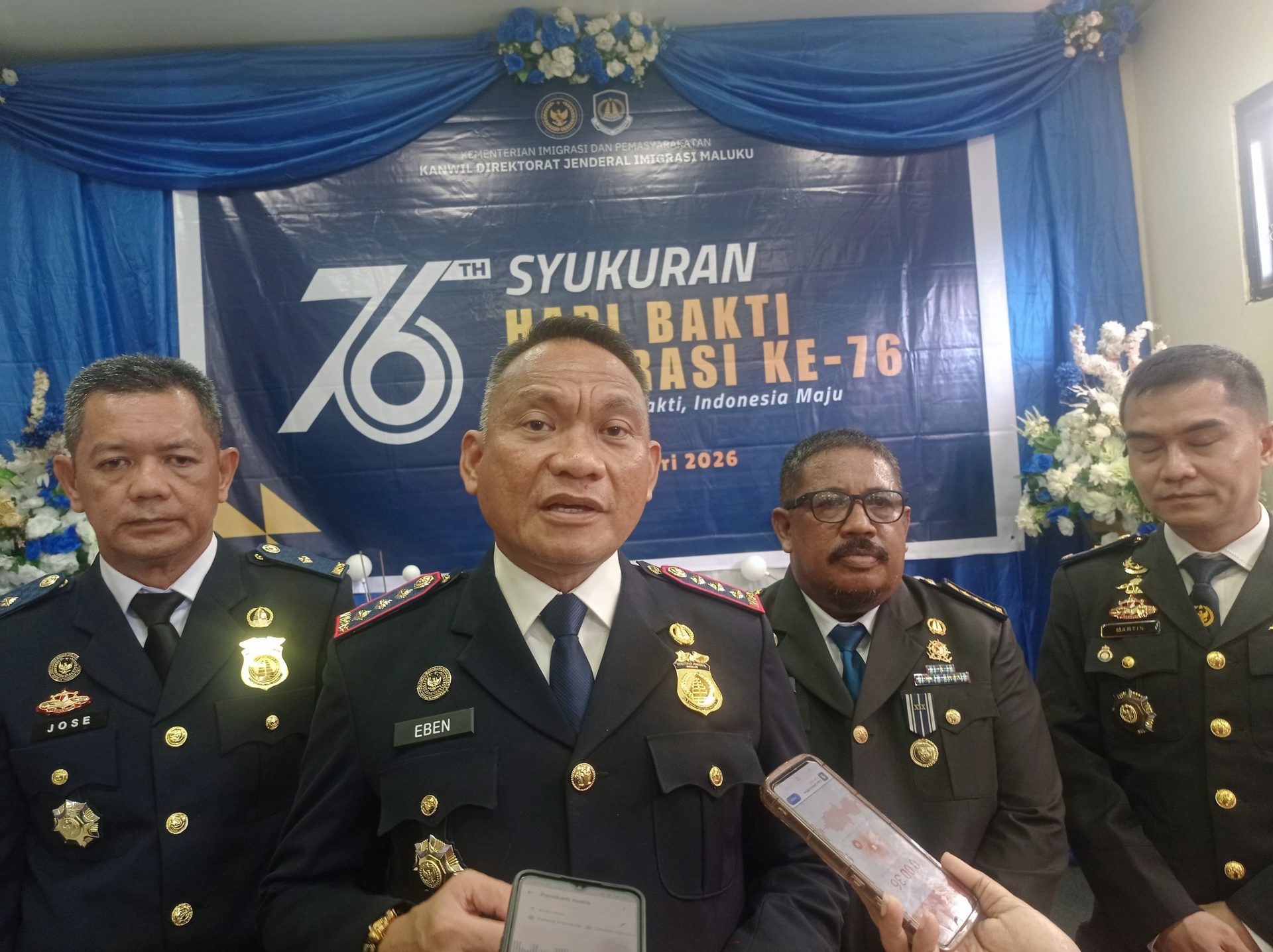 Ambon, indonesiatimur.co — Kantor Imigrasi Kelas I TPI Ambon terus mendorong peningkatan pelayanan keimigrasian yang berdampak terhadap perekonomian dan kesejahteraan masyarakat. Hal tersebut disampaikan Kepala Kantor Imigrasi Kelas I TPI Ambon, Eben Rifqi Taufan, S.H., M.M., Senin (26/01/2026), usai syukuran Hari Bhakti Imigrasi ke-76.