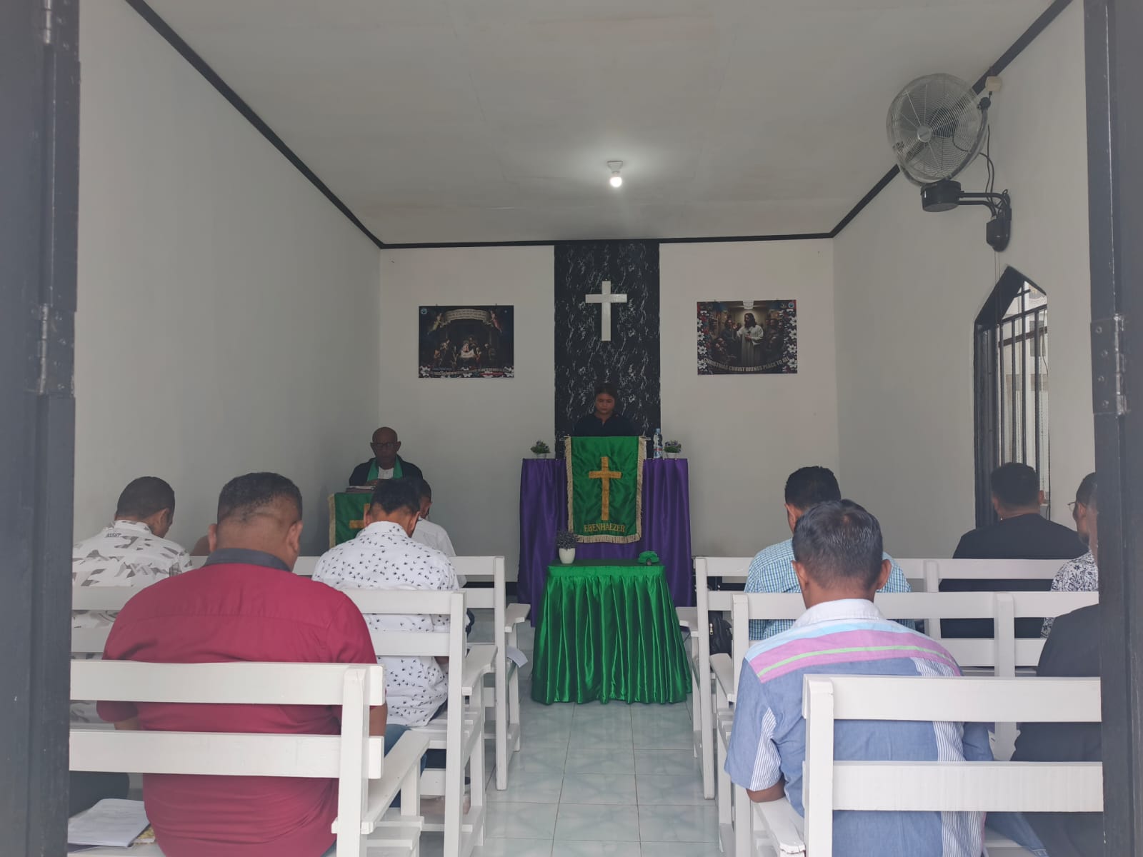 Ibadah dipimpin oleh Pdt. Bella Lawalata dengan pembacaan Firman Tuhan yang diambil dari Efesus 1:3–14, dengan tema “Kekayaan Orang-Orang yang Terpilih.” Suasana ibadah terasa hangat dan penuh pengharapan, mencerminkan semangat pertobatan dan pembaruan hidup bagi setiap Warga Binaan yang hadir.