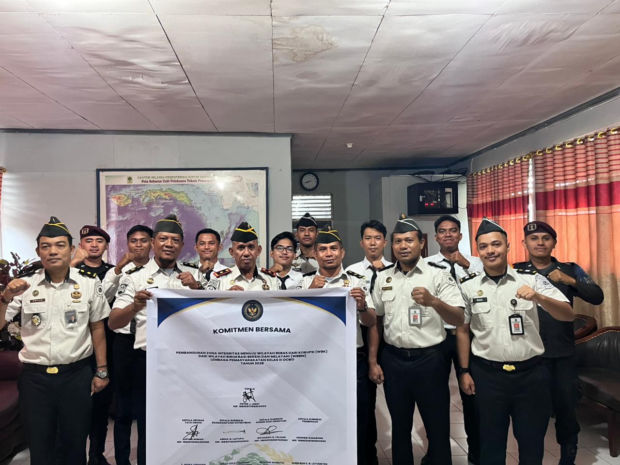 Dobo, indonesiatimur.co – Lembaga Pemasyarakatan Kelas III Dobo, Kanwil Direktorat Jenderal Pemasyarakatan Maluku, melaksanakan penandatanganan komitmen bersama pembangunan zona integritas tahun 2026, Senin (09/02/2026).