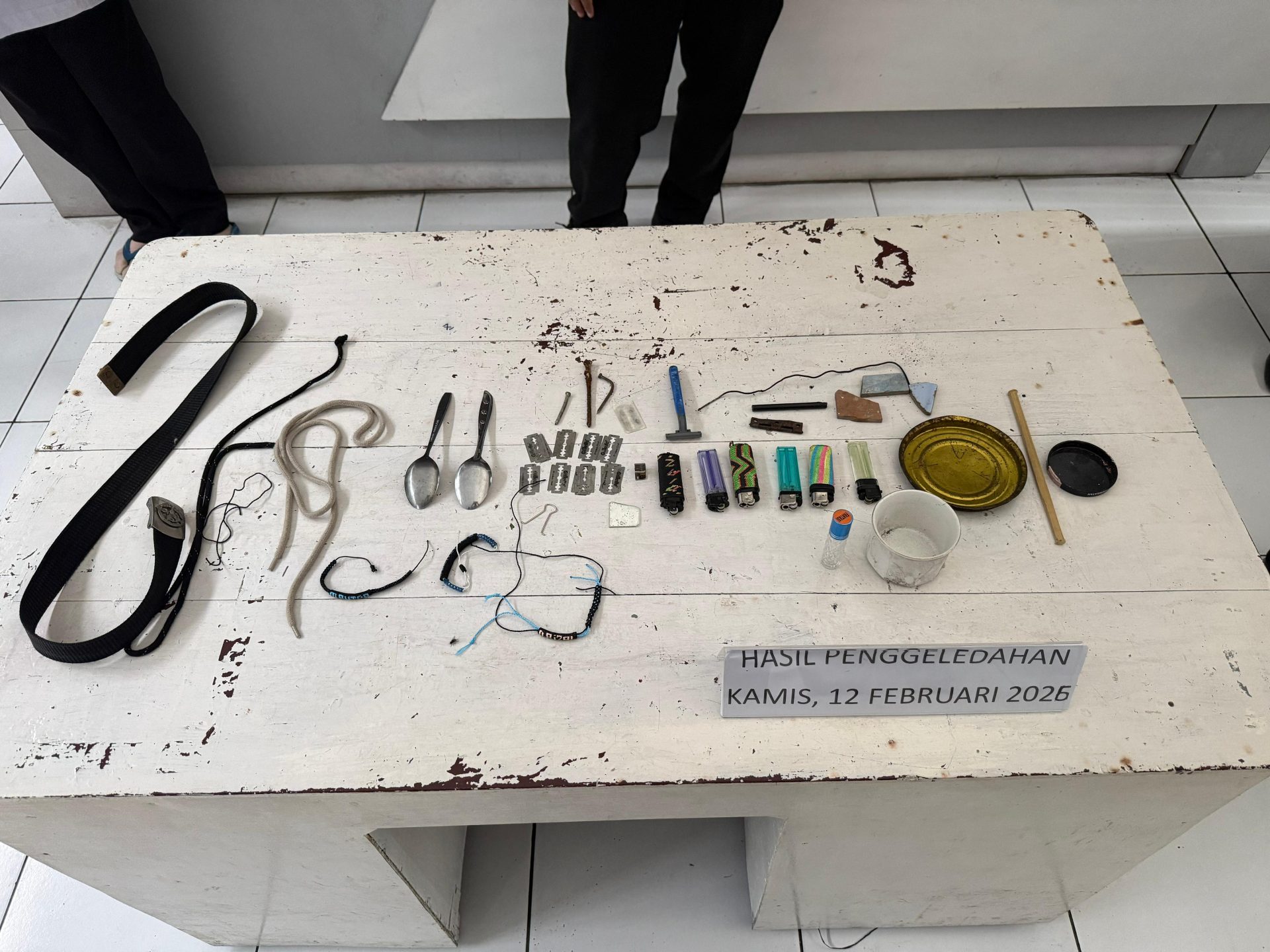 Dalam razia ini, petugas gabungan kembali menyita sejumlah barang-barang milik warga binaan seperti sendok, alat cukur, korek api, paku, silet, kawat, tali, botol kaca, dan ikat pinggang. Sementara hasil tes urin dari sampel yang diambil dari petugas dan warga binaan, masing-masing menunjukkan hasil negatif.