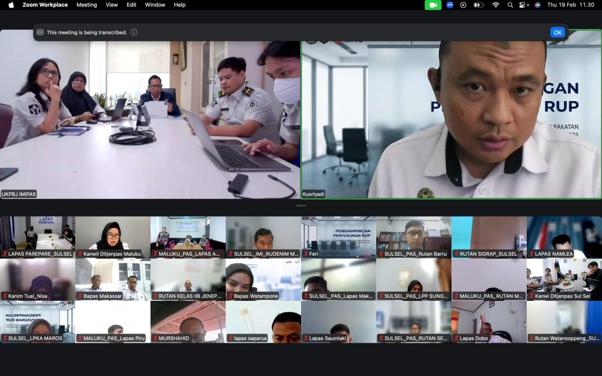 Ambon, indonesiatimur.co – Dalam rangka meningkatkan akurasi dan kepatuhan penyusunan Rencana Umum Pengadaan (RUP), Kepala Bidang Pelayanan dan Pembinaan Kantor Wilayah Direktorat Jenderal Pemasyarakatan Maluku, Fifi Firda, mengikuti kegiatan pendampingan RUP Satuan Pelaksana UKPBJ Wilayah 6 secara virtual, Kamis (19/02/2026).