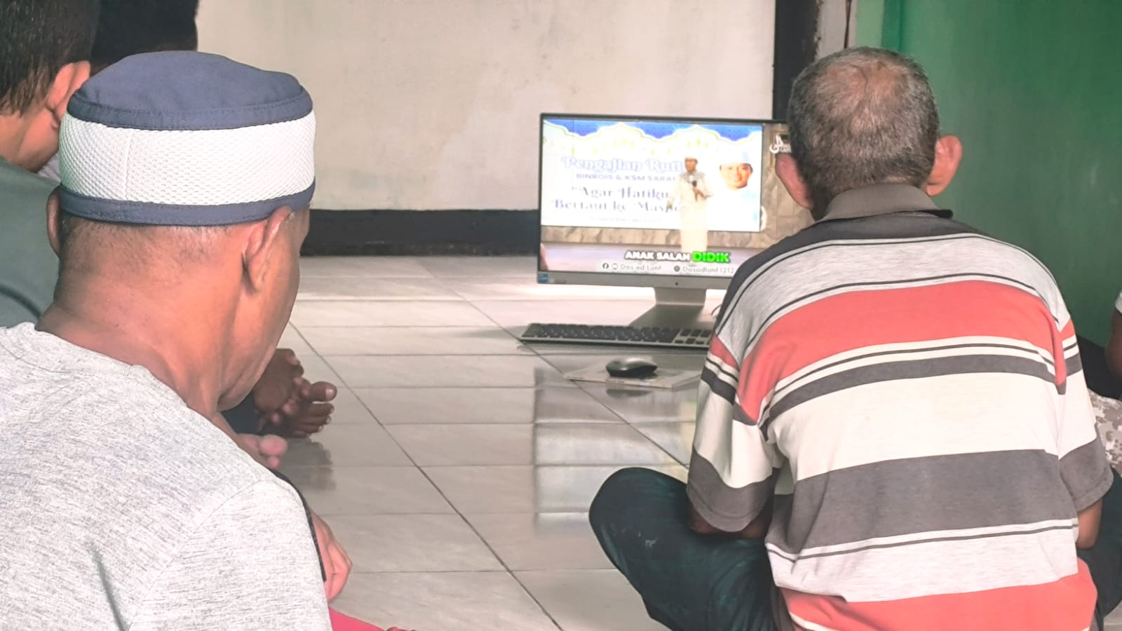 Wahai, indonesiatimur.co – Warga Binaan Muslim di Lembaga Pemasyarakatan (Lapas) Kelas III Wahai ikuti ceramah agama secara virtual untuk mengisi Ramadan dengan kegiatan yang bermanfaat, Rabu (04/03/2026). Kegiatan ini menjadi program pembinaan kerohanian yang dilaksanakan selama Ramadan. Bertempat di Beranda Mesra, para Warga Binaan tampak khusyuk menyimak tausiah yang disampaikan secara virtual oleh penceramah kondang, Ustaz Das’ad Latif.