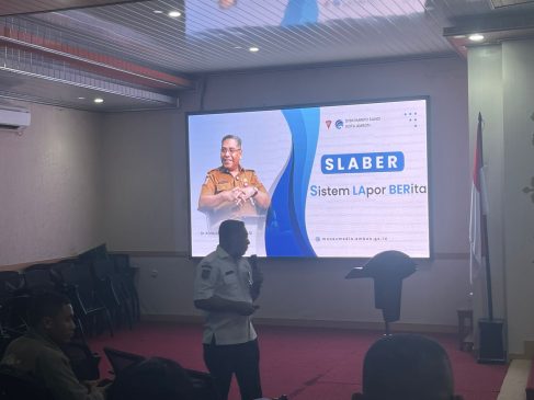 Ambon, indonesiatimur.co — Dinas Komunikasi Informatika dan Persandian Kota Ambon melaksanakan sosialisasi penggunaan aplikasi Sistem Lapor Berita (SLABER) kepada media online yang telah menandatangani Perjanjian Kerja Sama (PKS) dengan Pemerintah Kota Ambon. Kegiatan yang dilaksanakan pada Rabu (22/04/2026) di ruang Vlisingen Balai Kota Ambon, bertujuan untuk meningkatkan efektivitas koordinasi, transparansi, serta akuntabilitas dalam kerja sama publikasi antara pemerintah daerah dan media massa.